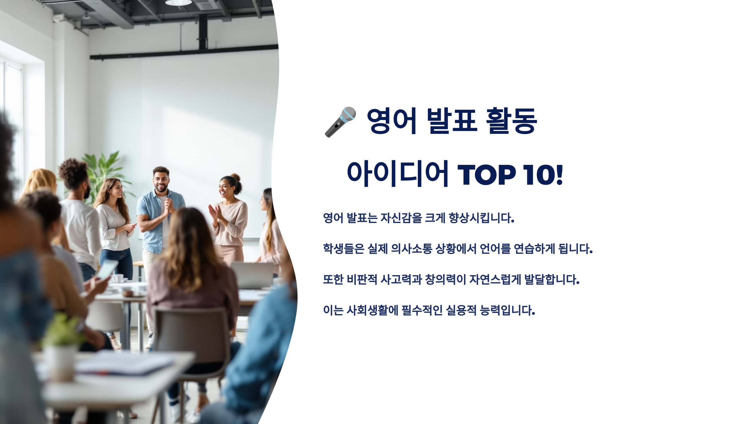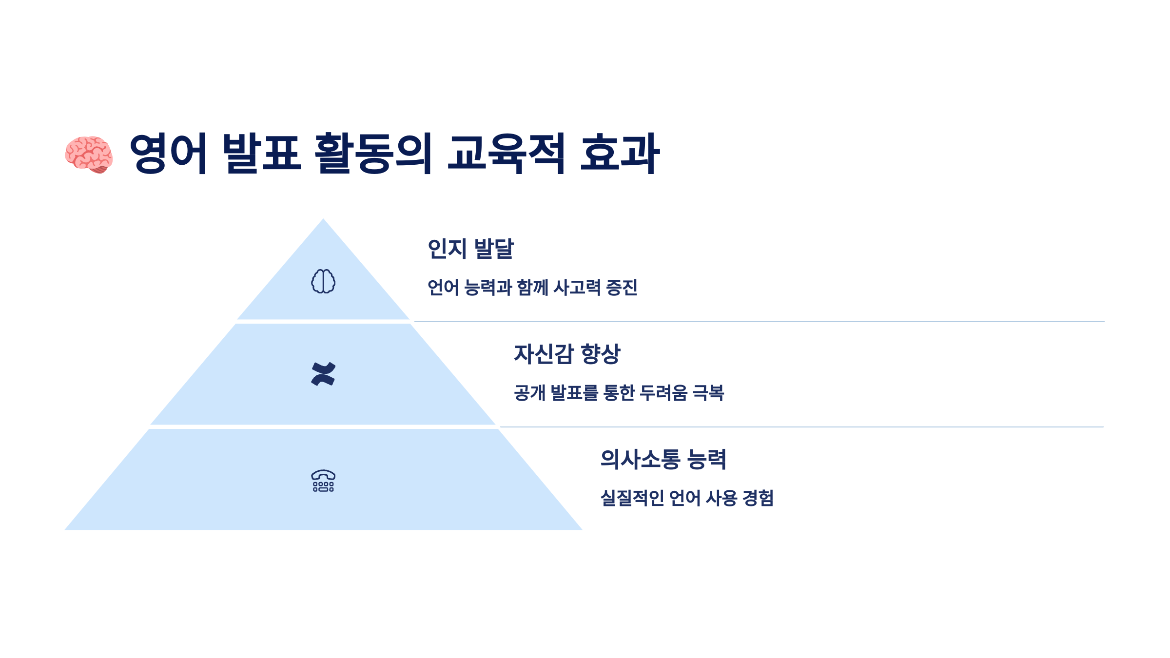 실제로 영어 발표를 자주 경험한 학생일수록 영어 말하기 평가나 회화 시험에서 표현력과 응용력이 높게 나타난다고 해요. 이는 발표가 '완성된 답을 외우는 것'이 아닌 '내 생각을 말하는 훈련'이기 때문이에요. 💬