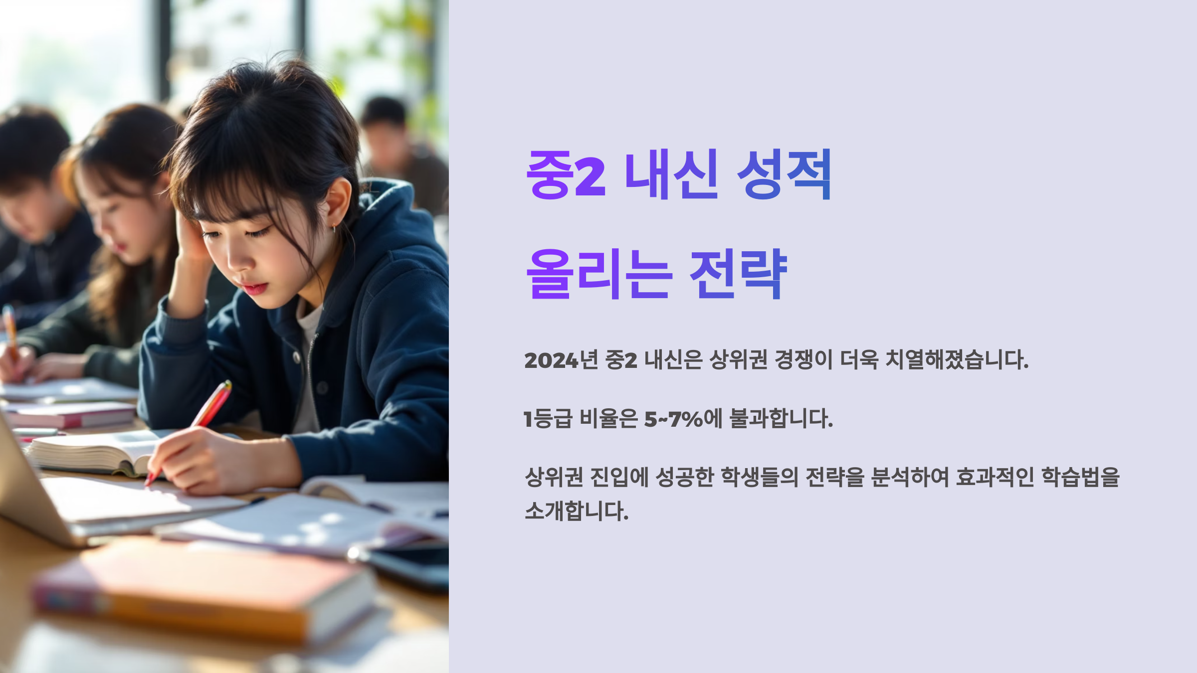 🎯 중2 내신에서 성적을 올리려면 단순히 문제집만 푸는 게 아니라 교과서 기반+수업 연계+자기 주도 정리가 필요해요. 특히 시험 범위가 발표되기 전부터 평소에 정리 노트를 만들어두면 엄청난 차이가 생겨요.