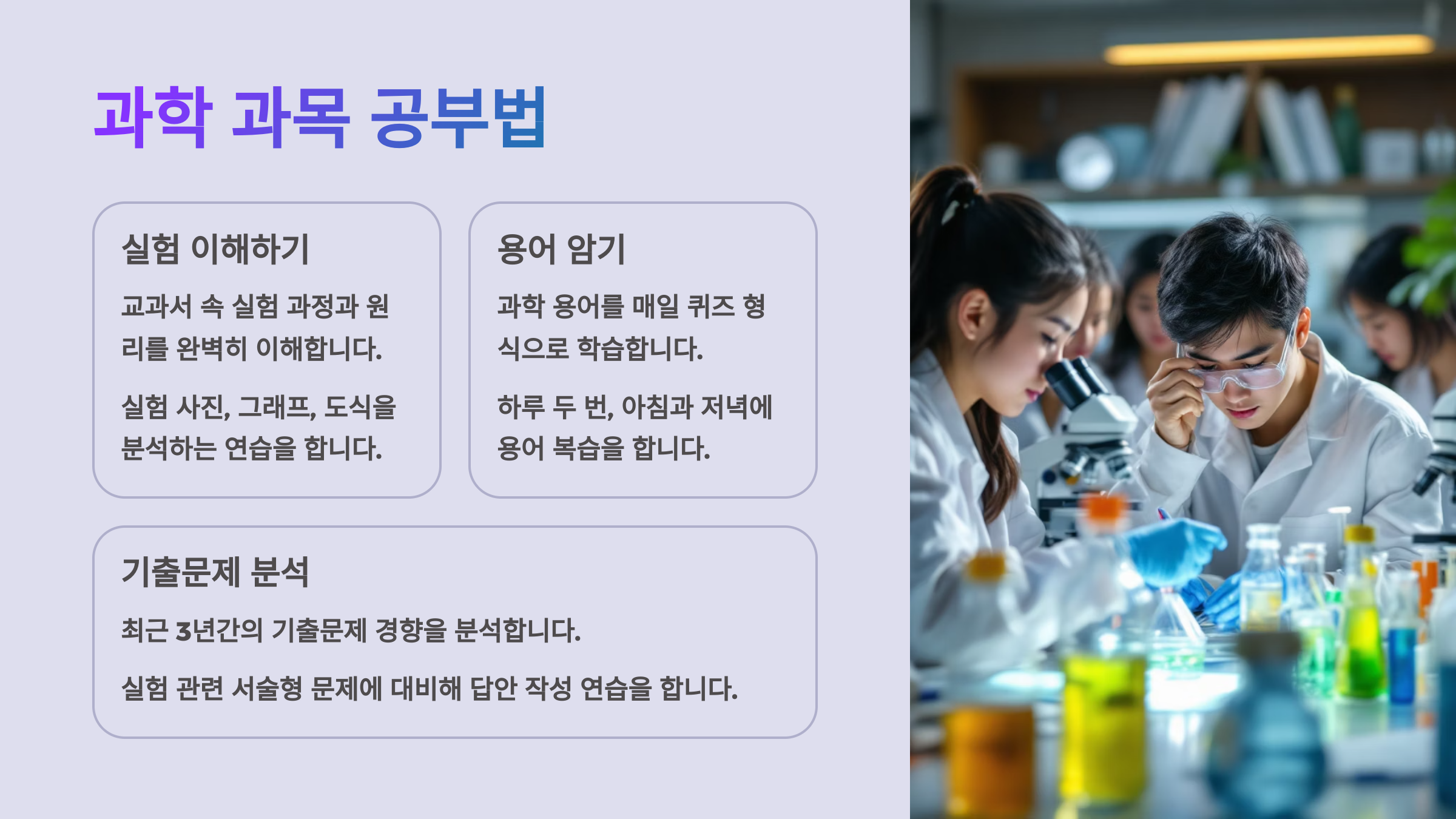 📣 다음은 과학 공부법! 개념은 많은데 시험은 디테일하게 나오는 과목이죠. 단순 암기가 통하지 않는 과학 공부법, 바로 보여드릴게요! 🧪📗