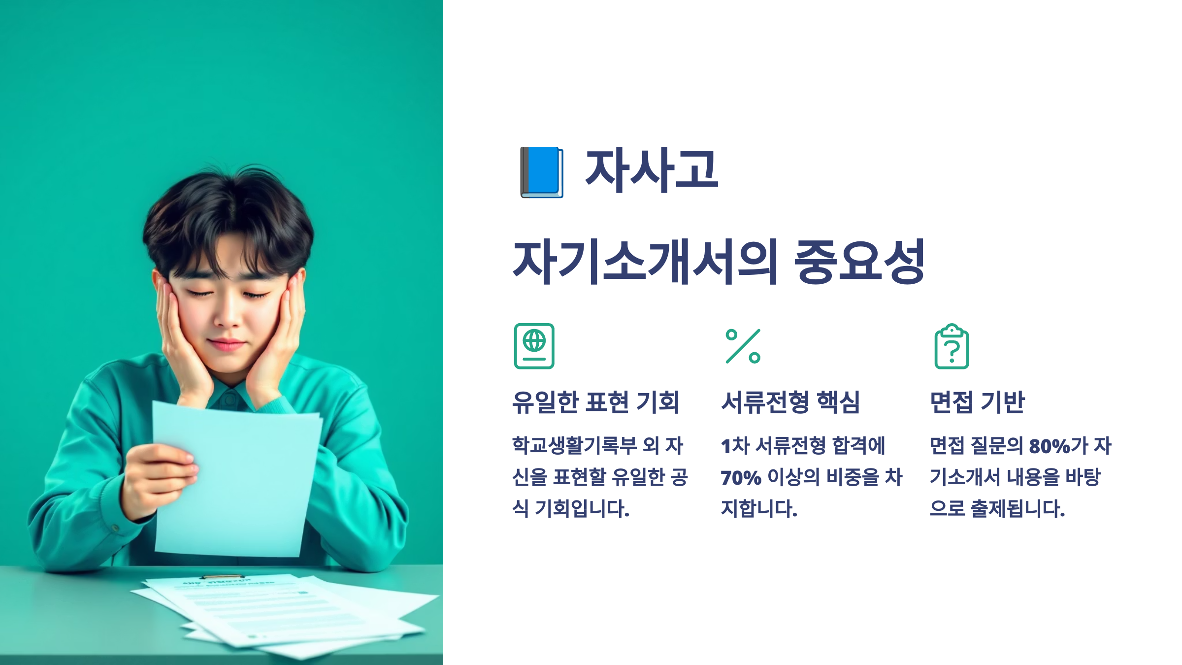 자사고 입시는 내신, 면접, 서류가 유기적으로 작용하는 복합 평가 시스템이에요. 이 가운데 자기소개서는 학생이 어떤 사람인지, 학교가 선발하고 싶은 유형에 부합하는지를 보여주는 가장 핵심적인 서류예요. 실제로 면접 질문의 대부분은 자소서를 기반으로 나와요. 📝👀