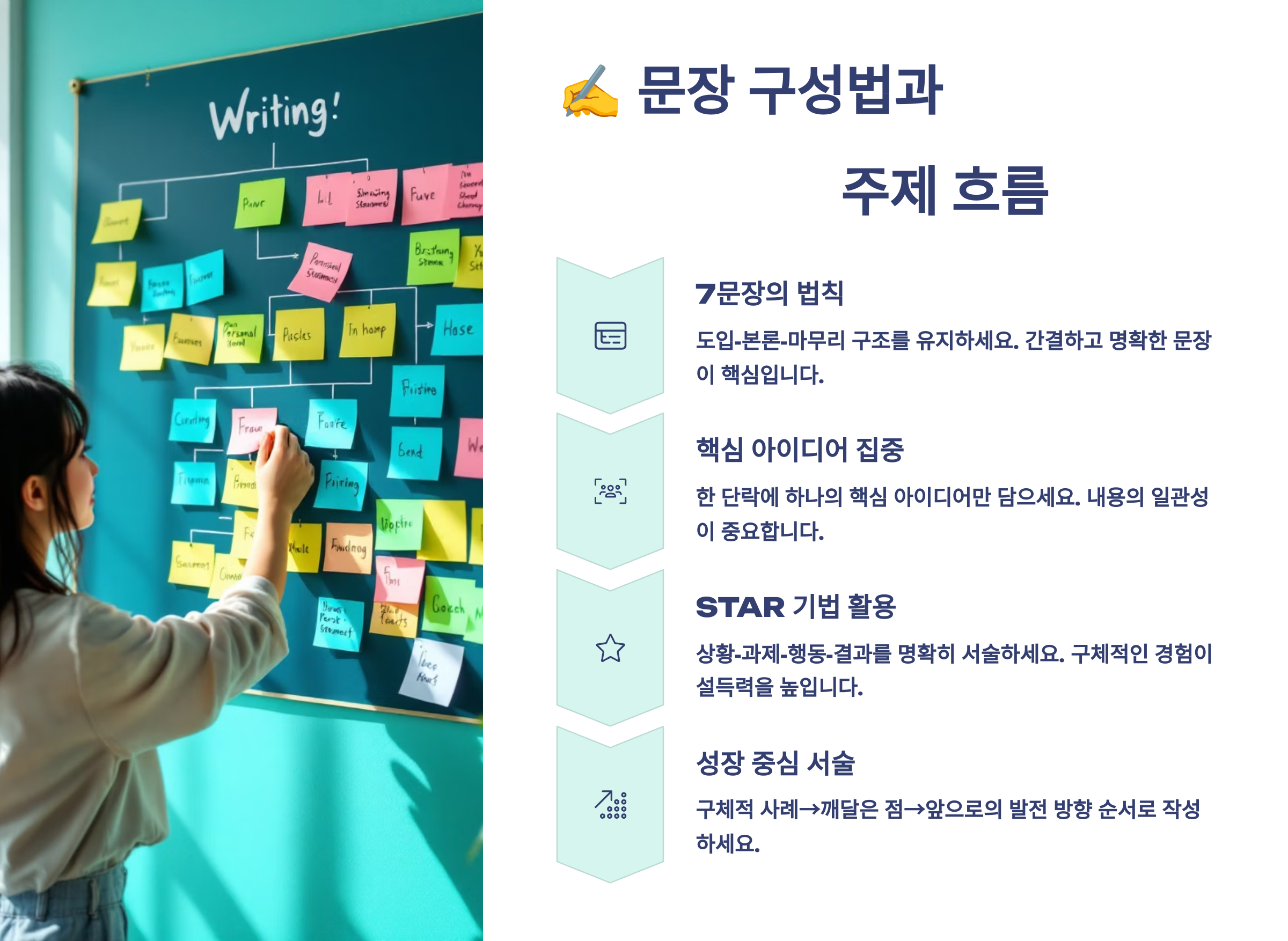 자소서는 잘 쓴 글이 아니라, 잘 구조화된 글이 먼저예요. 흐름이 명확하면, 짧은 문장도 강력하게 기억돼요! 💪🧠