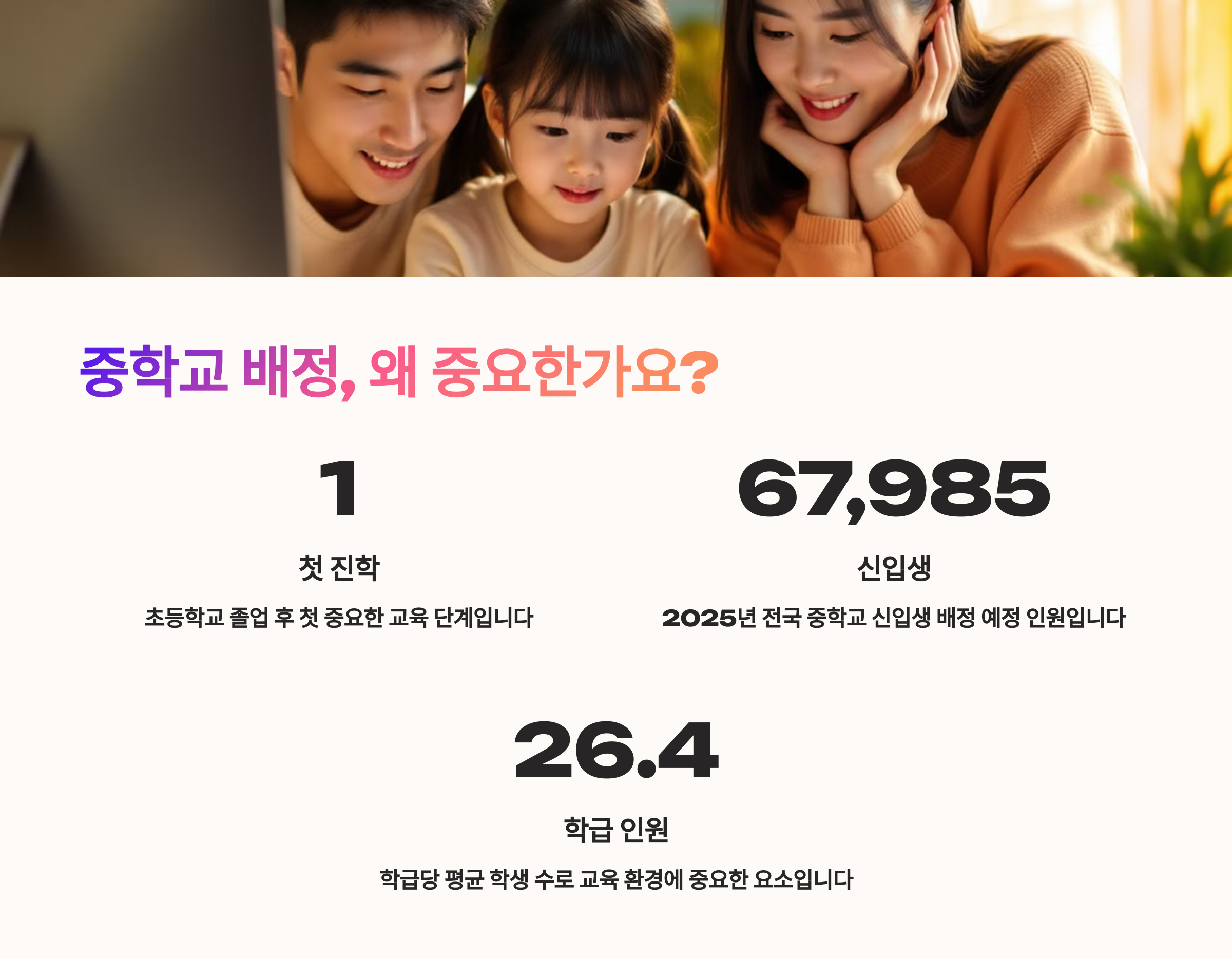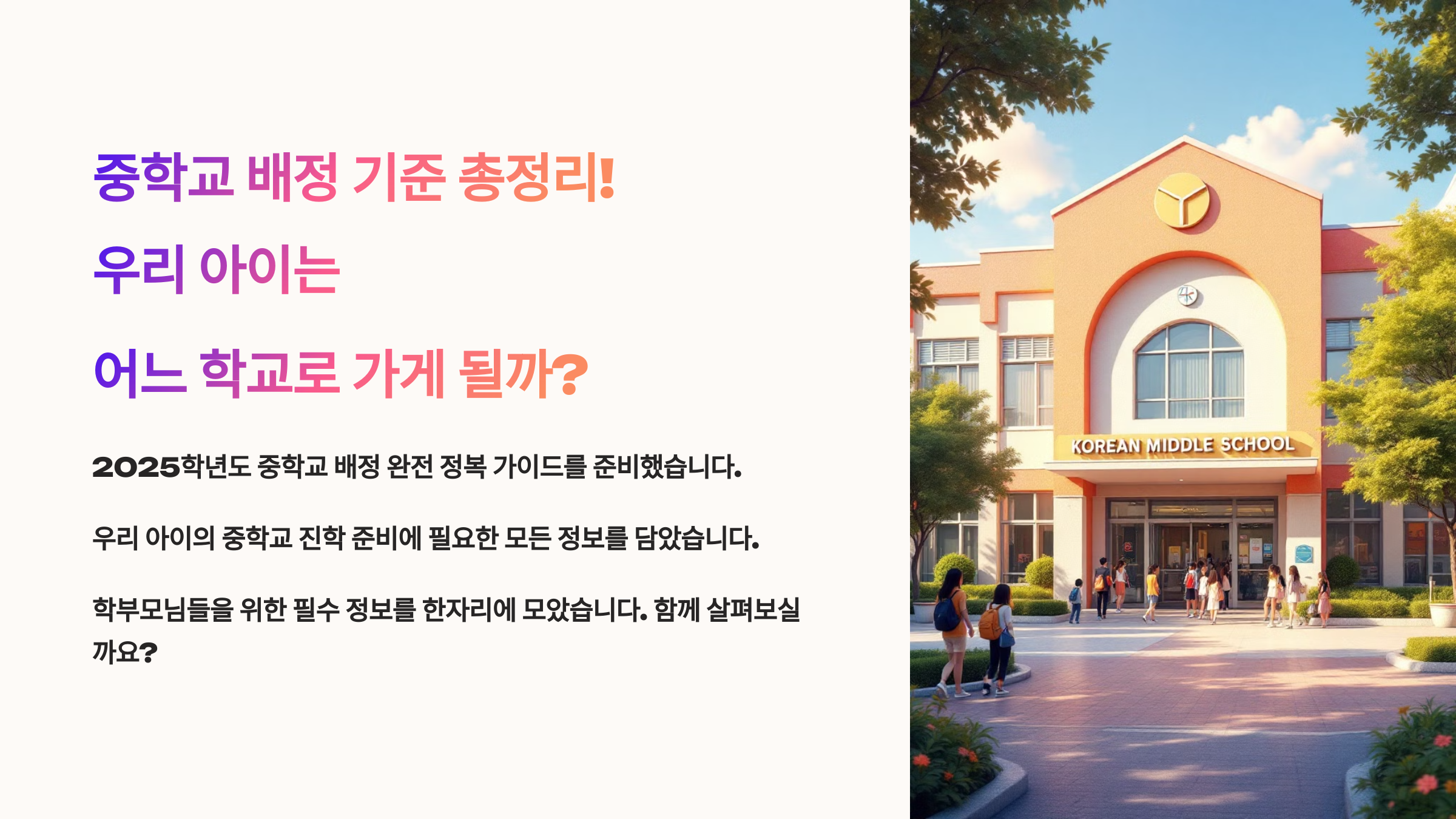 그럼 첫 번째 섹션 📍 중학교 배정, 왜 중요한가요?부터 시작할게요!