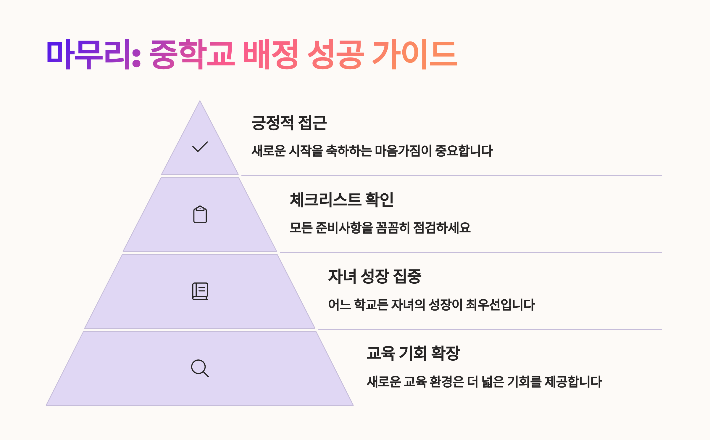 🏫 중학교 배정은 단순히 행정 절차처럼 보이지만, 아이의 학습 환경과 정서 발달에 큰 영향을 주는 중요한 전환점이에요. 그래서 부모가 사전에 정보를 정확히 알고 준비하는 게 무엇보다 중요하답니다.