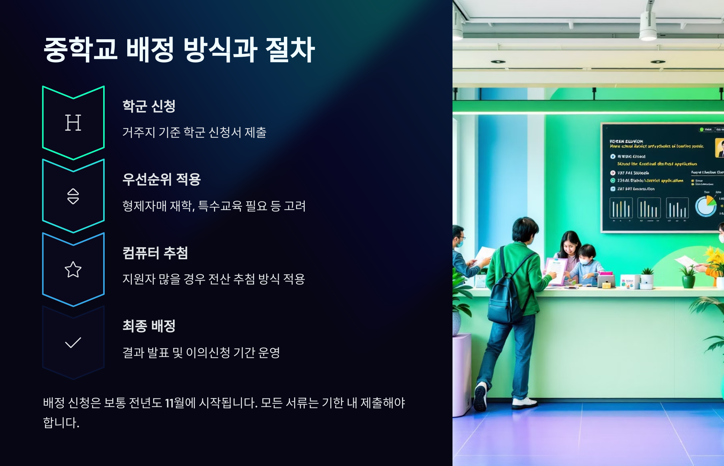 중학교는 대부분 의무교육 대상이기 때문에 시험 없이 배정 방식에 따라 자동 입학하게 돼요. 하지만 지역마다 배정 방식이 다르고, 부모님 입장에서는 매우 중요한 결정 요소가 되죠! 🎯📌