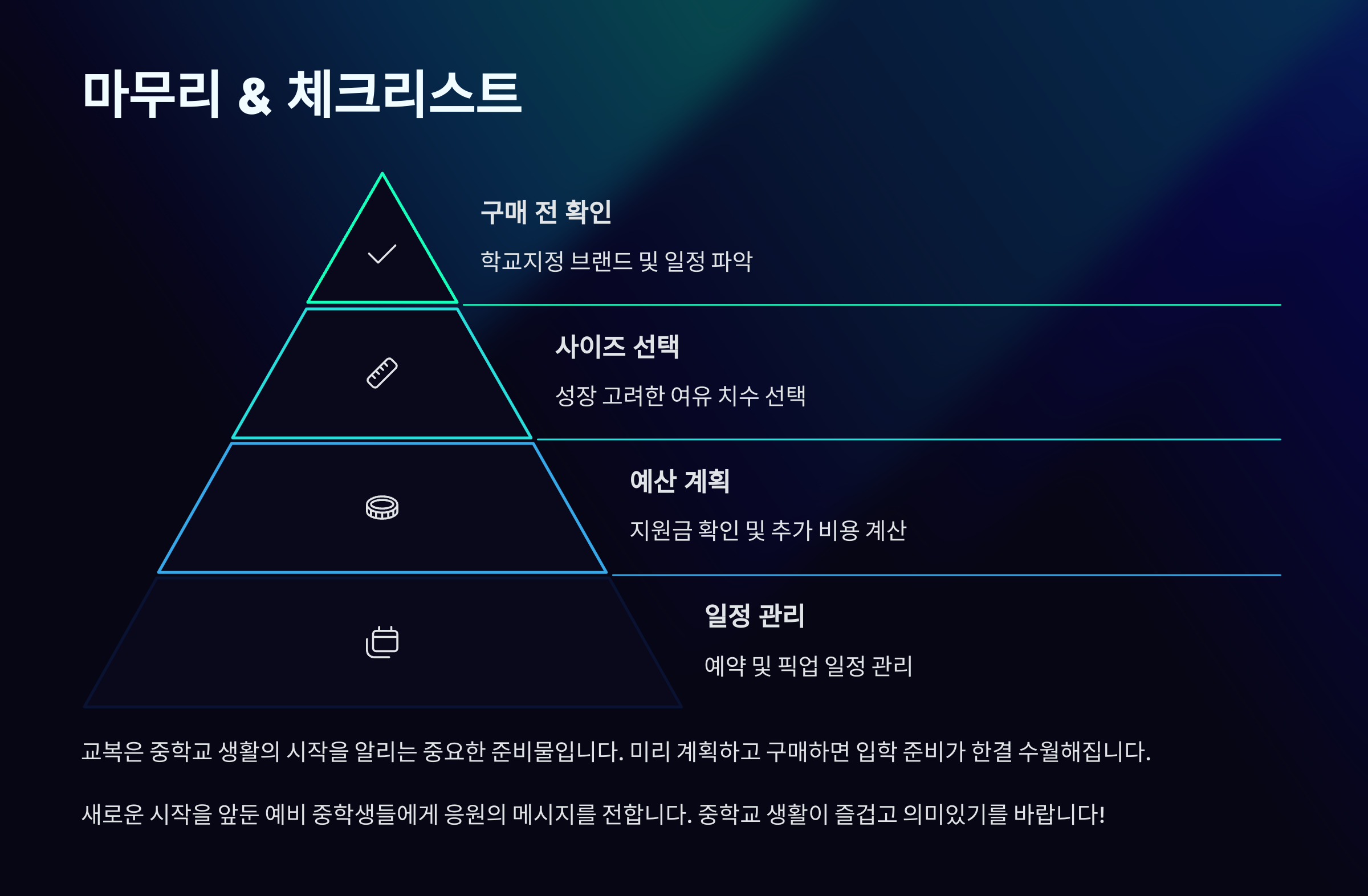 교복은 단순한 옷이 아니에요. 내 모습에 대한 책임감과 자존감을 함께 입는 멋진 출발이에요! ✨