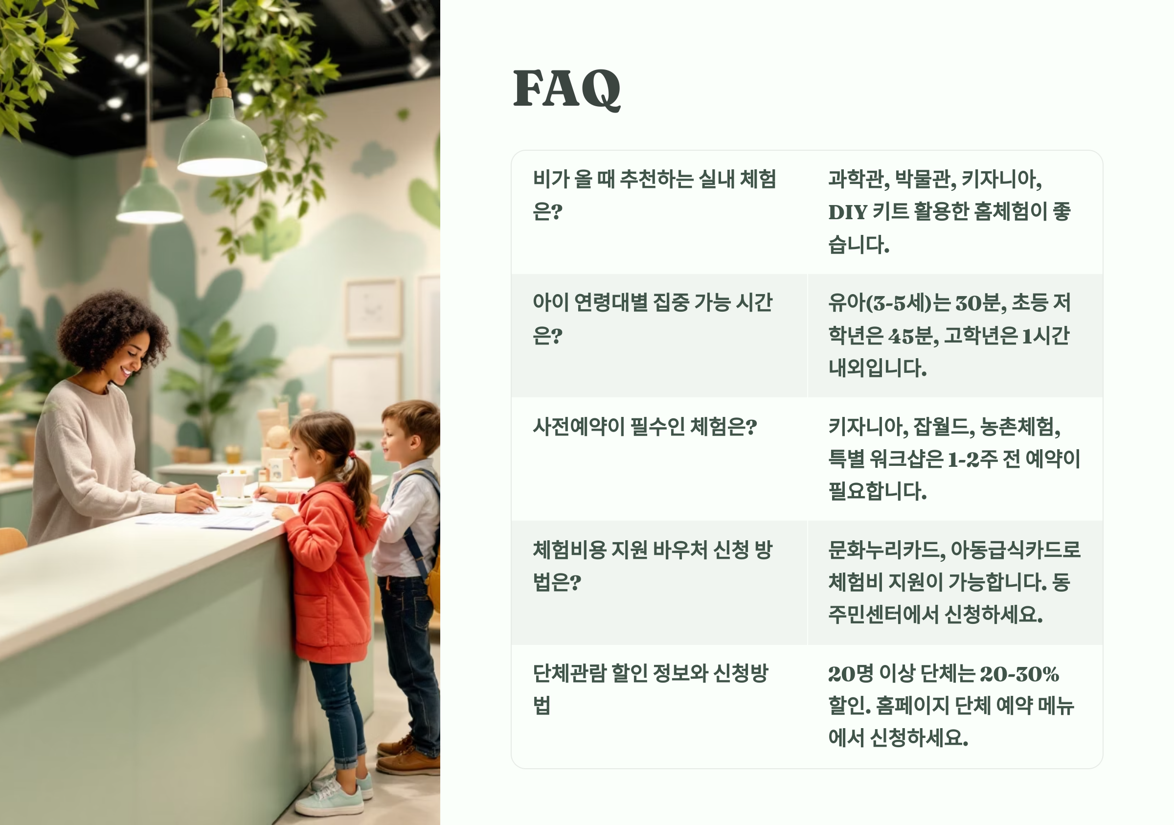 다음은 ❓ FAQ 많은 부모님들이 궁금해하는 체험활동 관련 질문 8가지 정리해줄게요! 🙋♀️