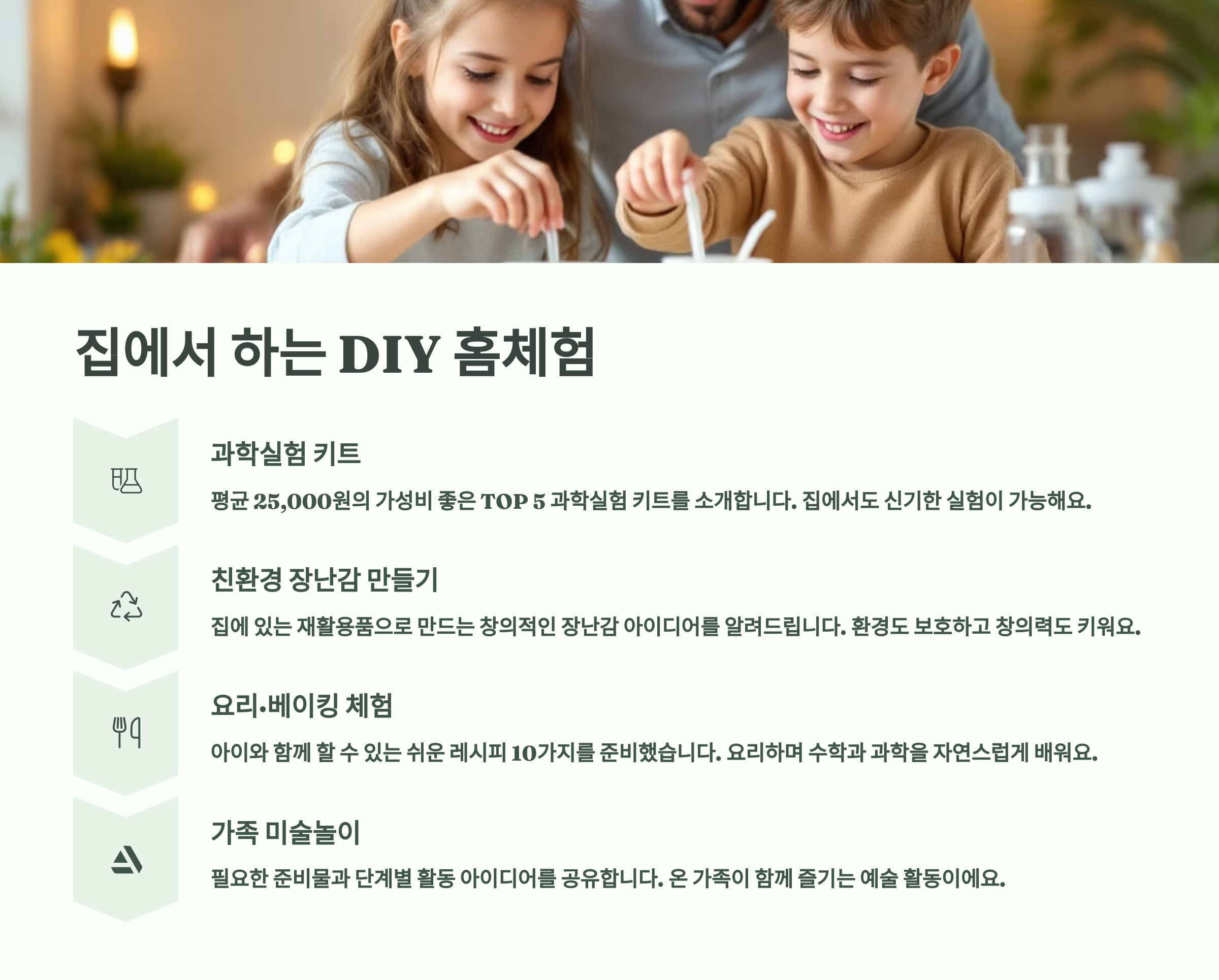 다음은 📚 집에서 하는 DIY 홈체험 밖에 나가지 않고도! 집 안에서 창의력과 감각을 키울 수 있는 활동 알려줄게요! 🏠🎨