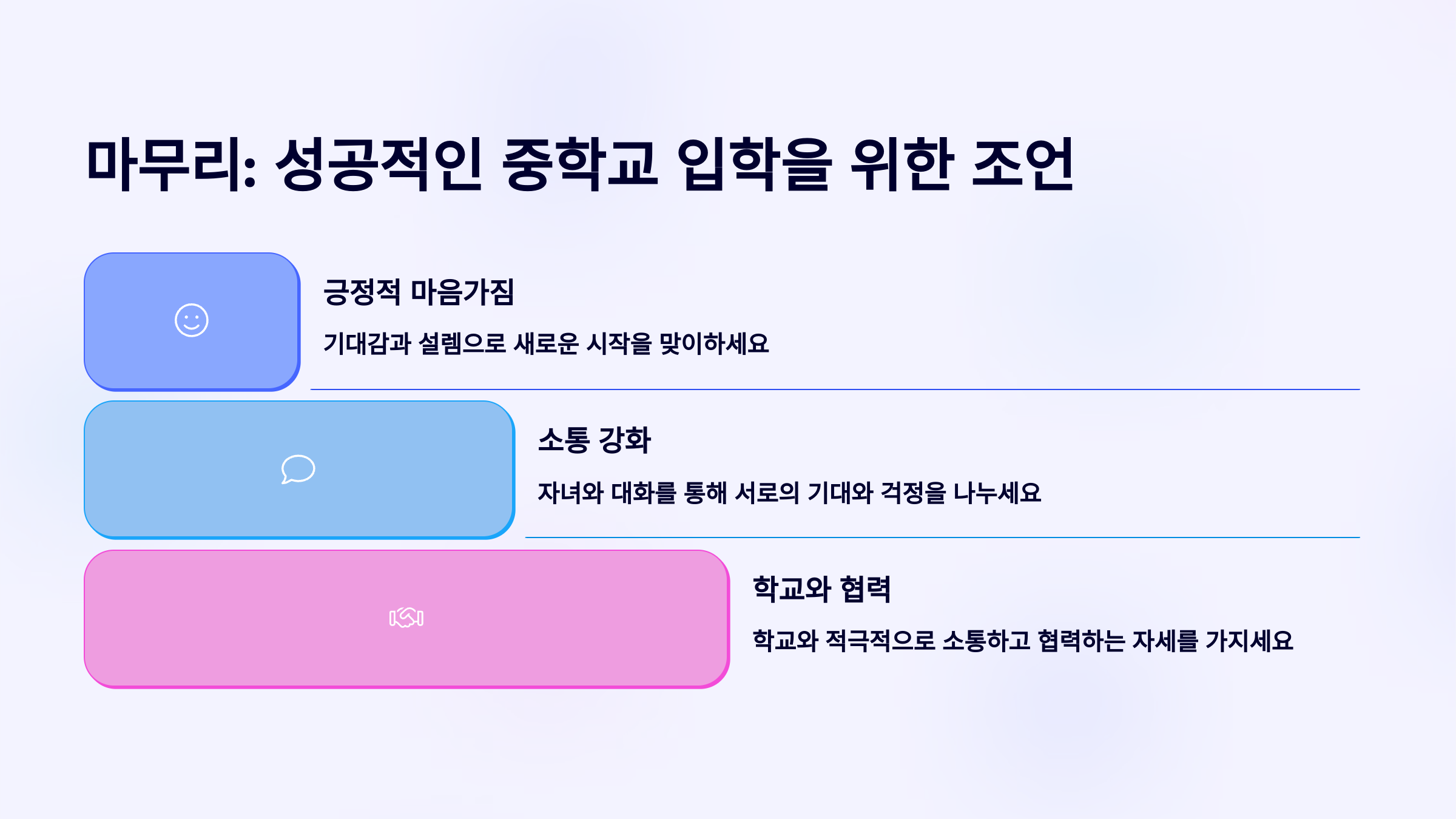 💡 중학생이 된다는 건 하루아침에 어른이 되는 게 아니에요. 지금은 실패하고 배우고, 실수하며 성장하는 시기니까 너무 조급해하지 마세요! 부모의 느긋함이 아이에게는 큰 힘이 돼요 😊