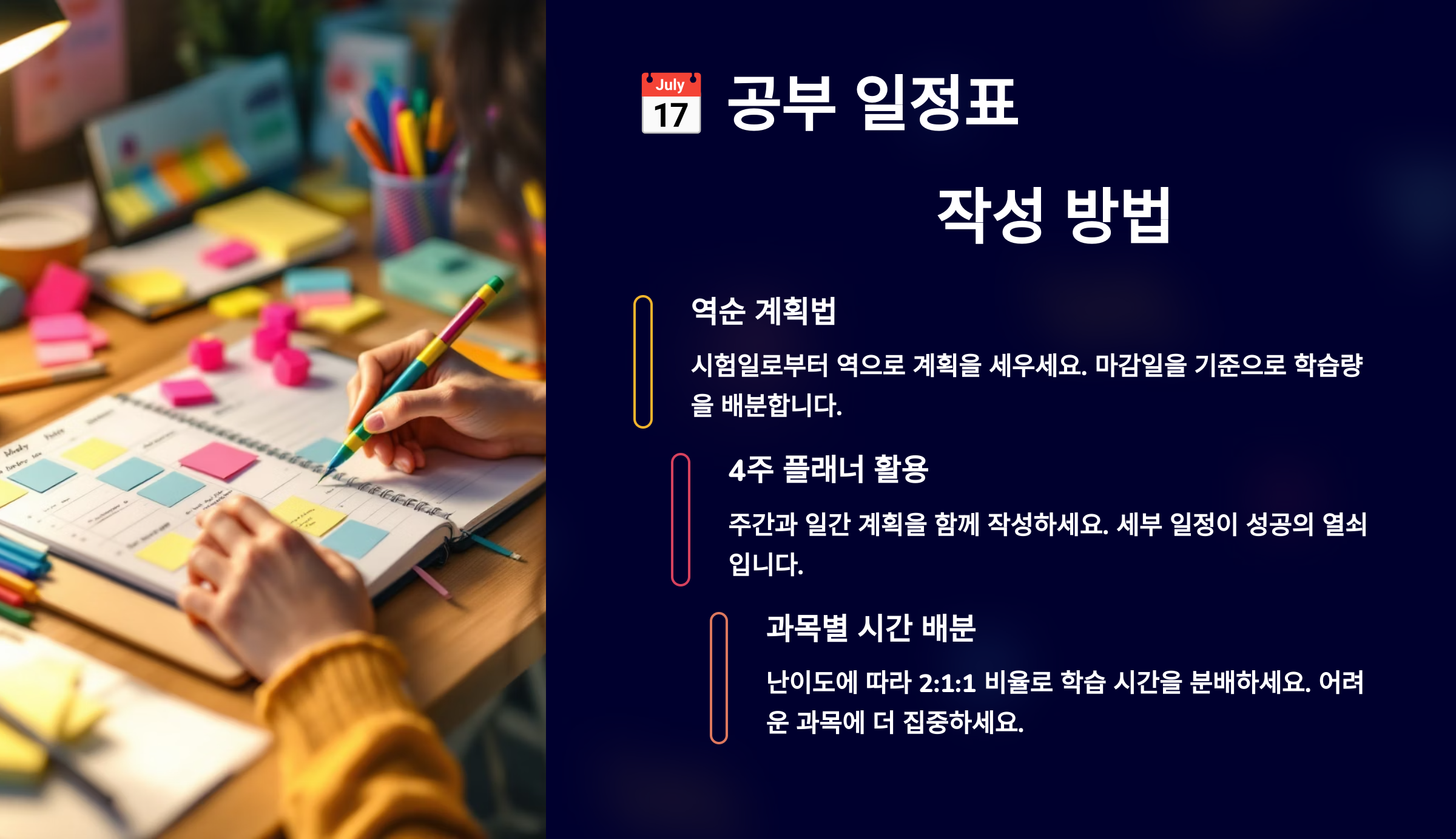 🌟 이제 다음 섹션에서는 공부 일정표 작성 방법을 구체적으로 알려줄게요! 📅✨