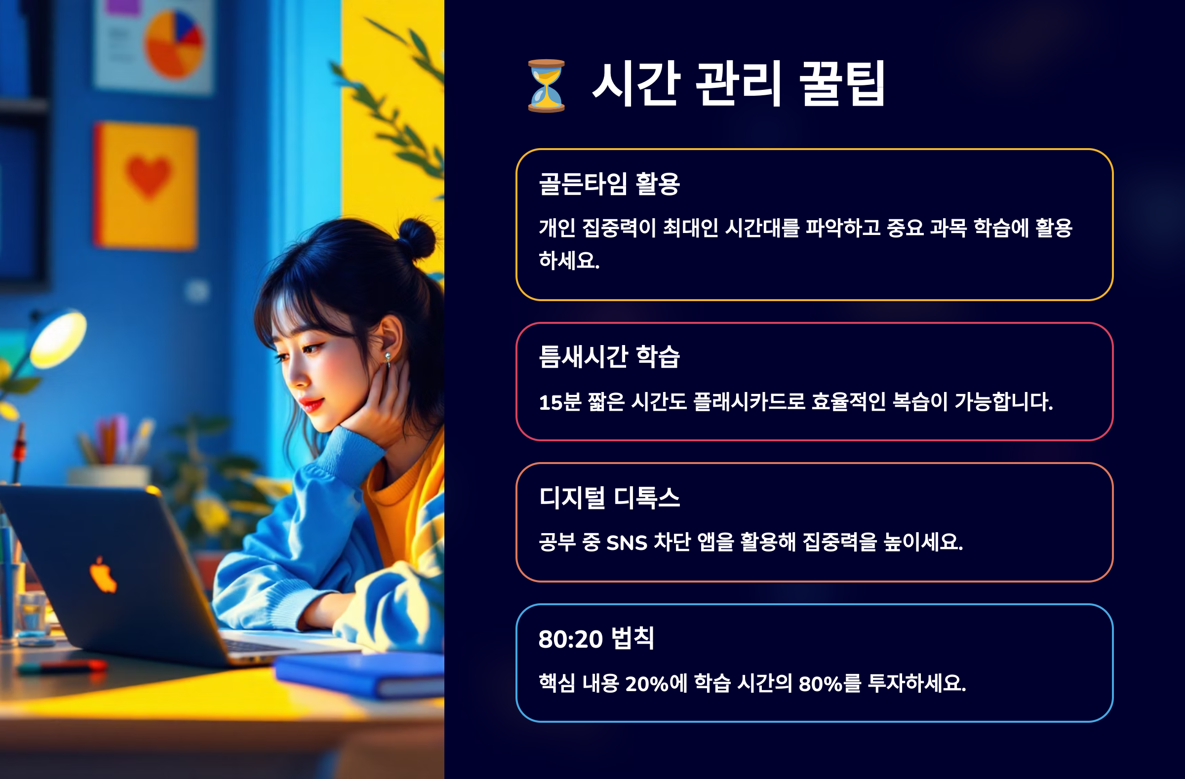 기말고사 대비에서는 시간 관리가 진짜 핵심이에요! 공부할 게 많을수록 시간을 효율적으로 쪼개 써야 스트레스도 줄이고 성적도 제대로 올릴 수 있답니다! 🚀⏳