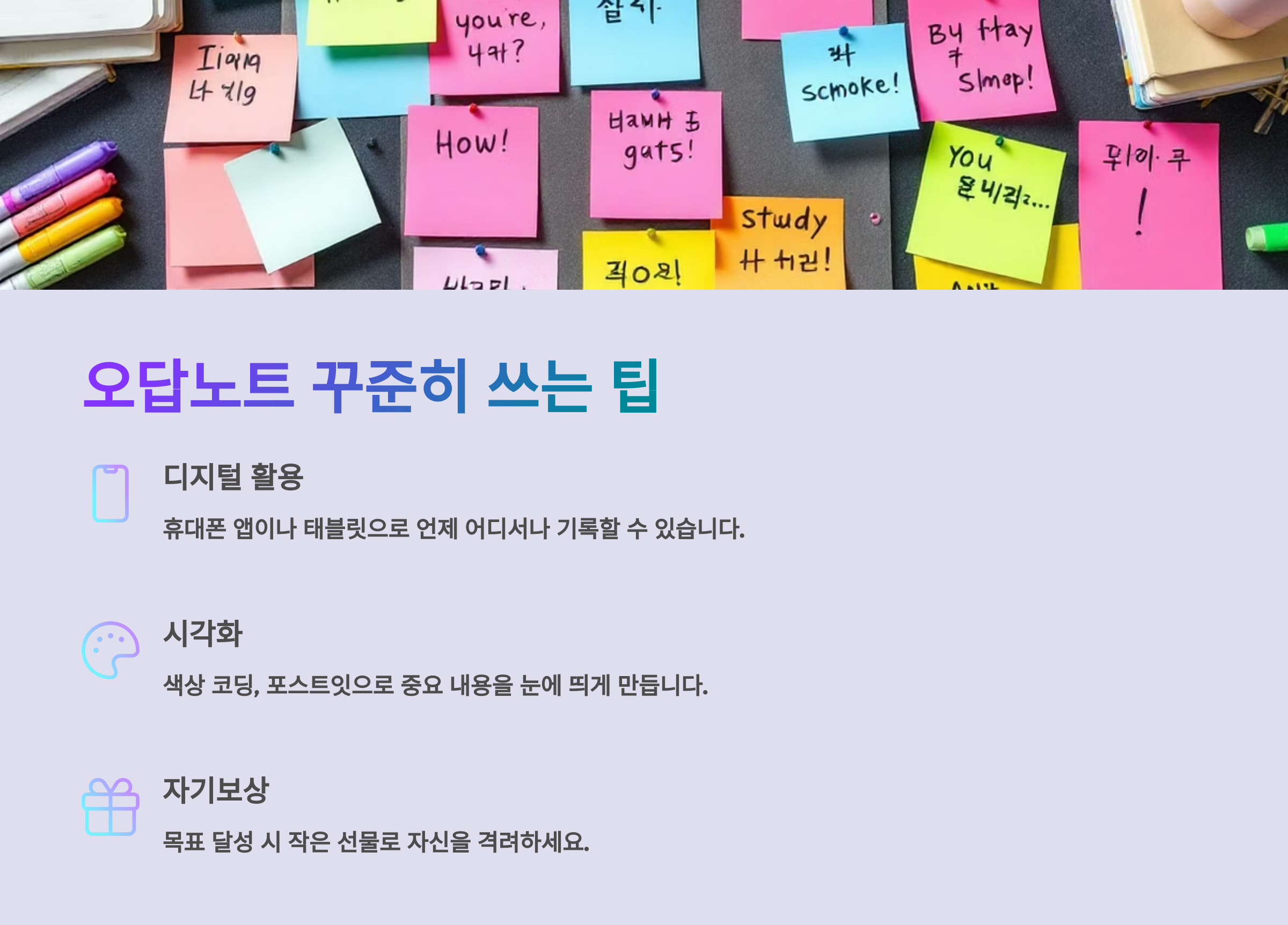 😅 그래서 꾸준히 오답노트를 쓰기 위한 현실적인 팁을 준비했어요! 📝✨