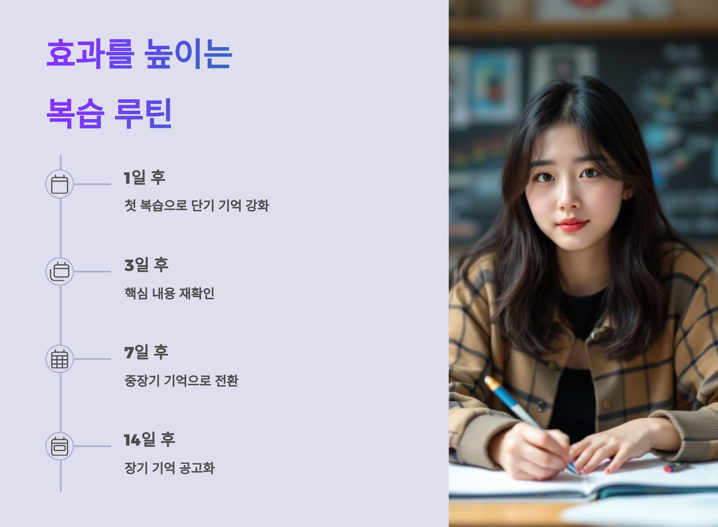 A4. 당일 복습, 3일 후 복습, 7일 후 복습 루틴을 추천해요! 🔁